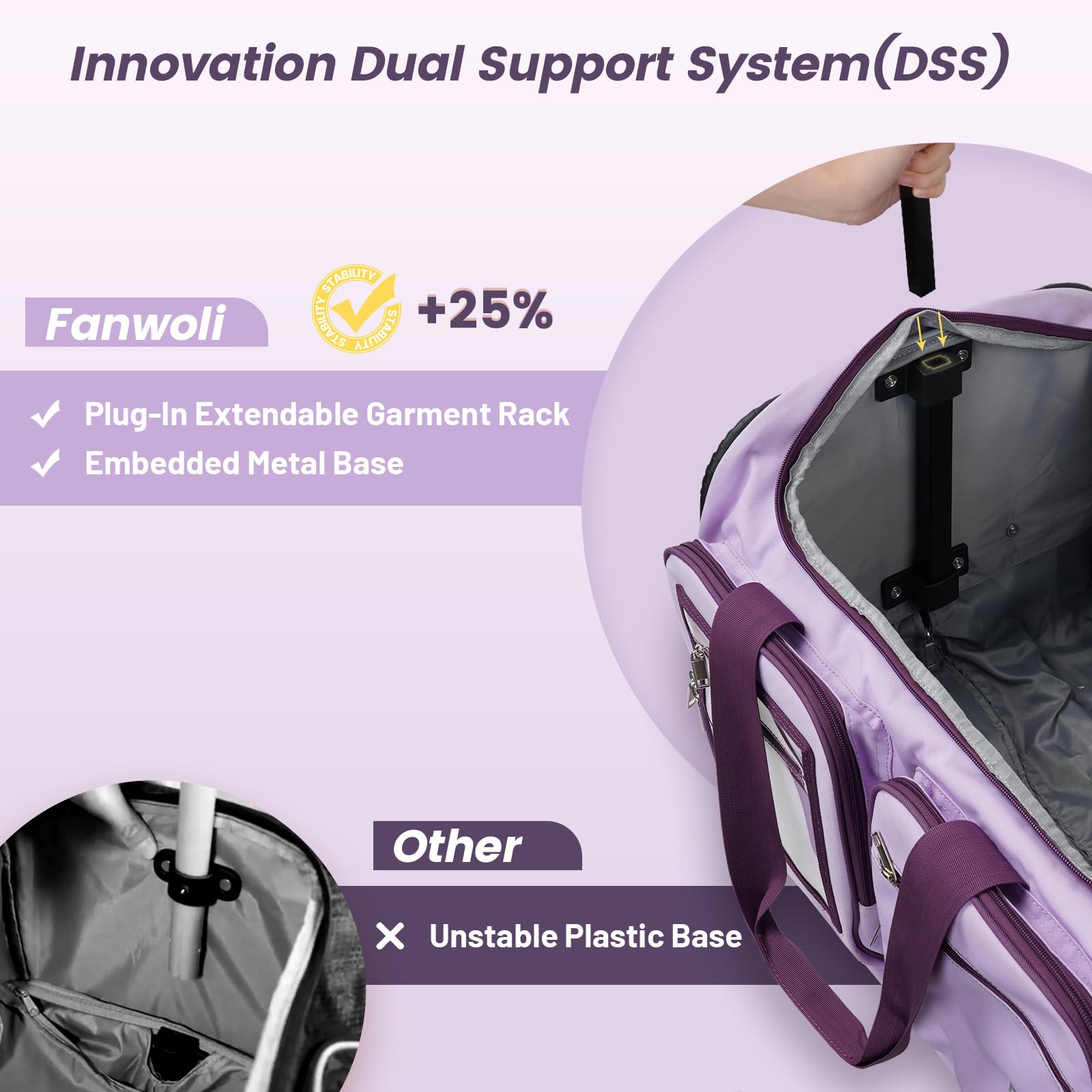 Fanwoli Dance Bag with Garment Rack, 23" Foldable Rolling Dance Bags Duffel Bag with Privacy Cover, Costume Suitcase for Dancers Shows Athletes