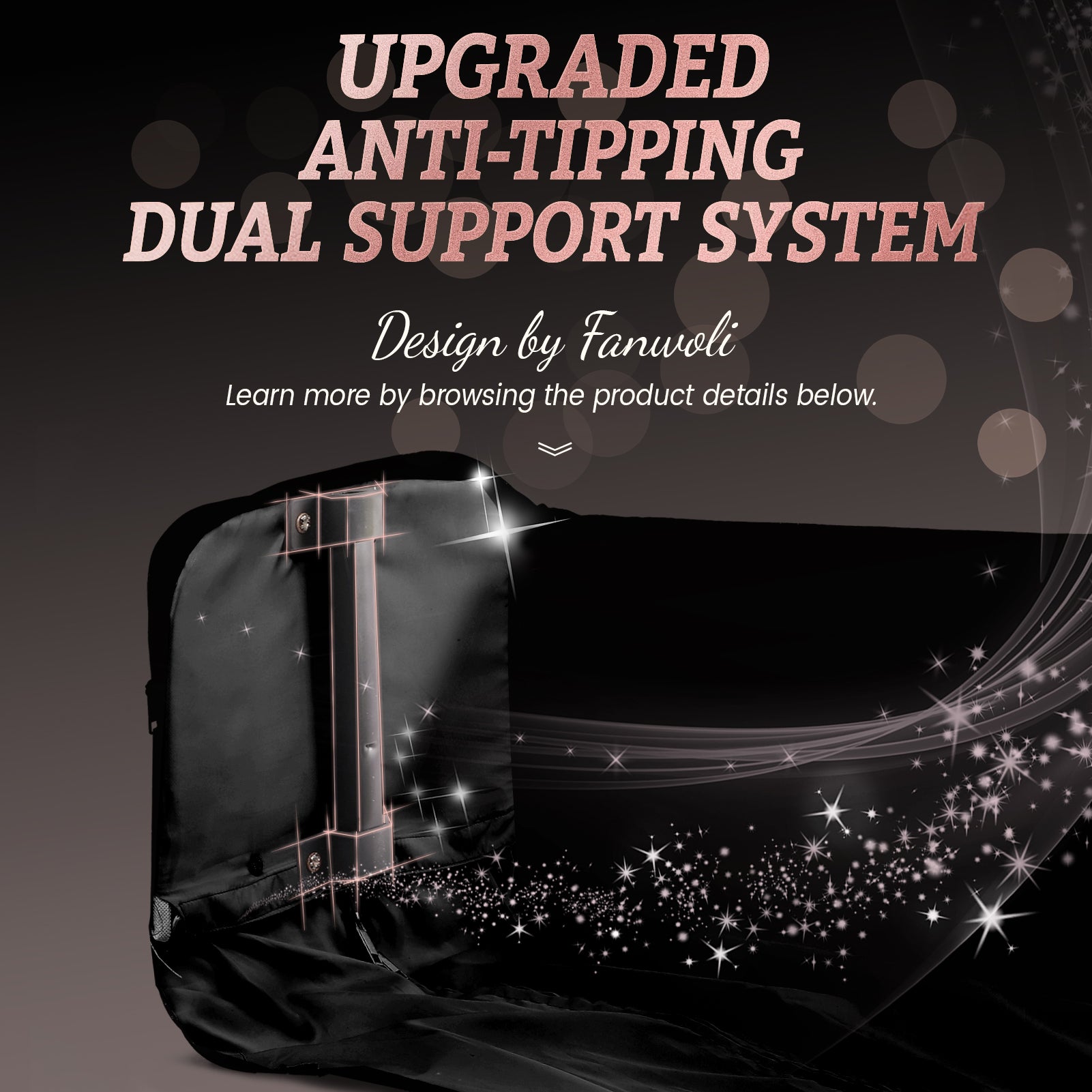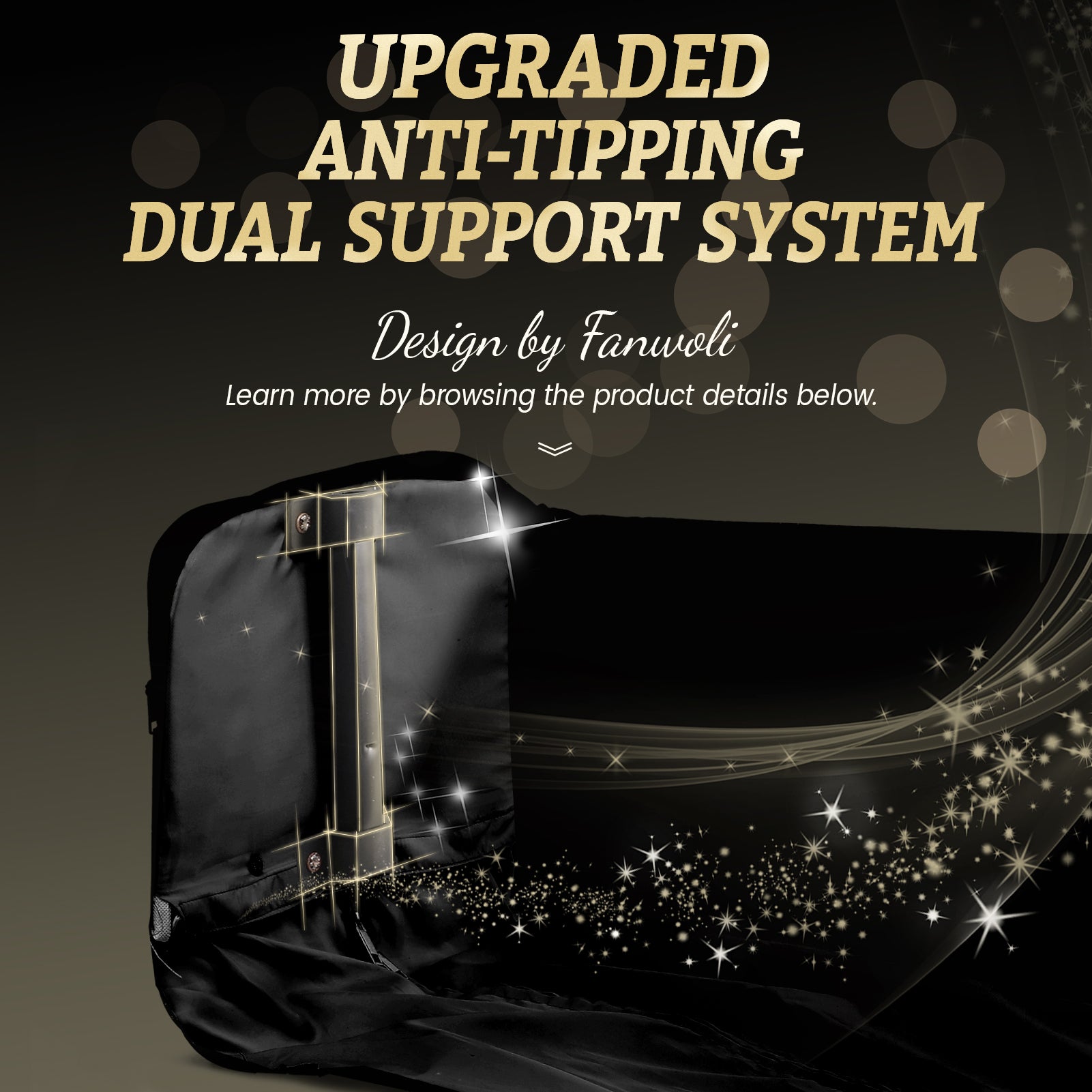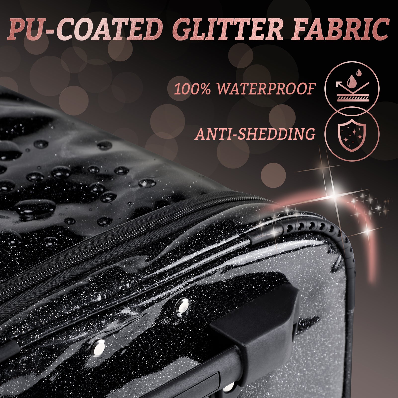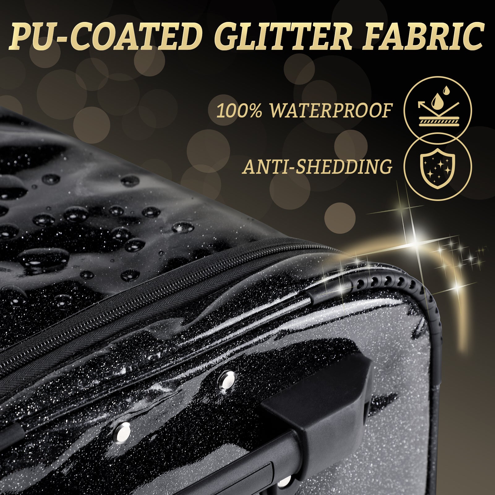 Give your child's dancing dreams the support they deserve with our top-of-the-line dance bag. Help your budding dancer shine on the stage by investing in a dance bag that matches their passion. Dancers should focus their time on the stage and their dreams. Champions are always won by those who are more prepared. Save time for creativity. Let us organize your costume wardrobe. Built to last with an enhanced anti-tipping design and a stable DUAL SUPPORT SYSTEM, this bag is crafted from waterproof PU-coated glitter fabric for durability and shape retention, making it the perfect companion for all your competitions and awards. Start their journey towards success with our professional dance bag now!