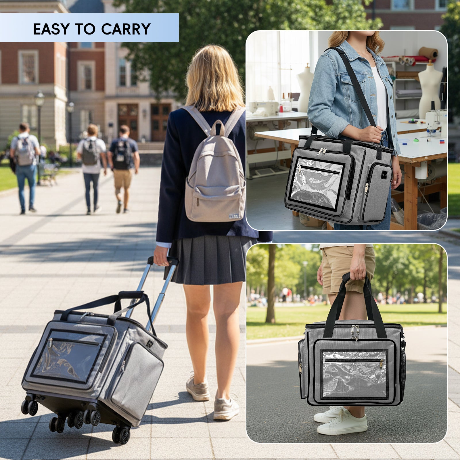 Fegat Rolling Craft Bag,Large Scrapbook Sewing Machine Tote Bag,Roller with Laptop Compartment,Detachable Cart,Sewing Accessories Tote for Women,Craft,Teaching,Office
