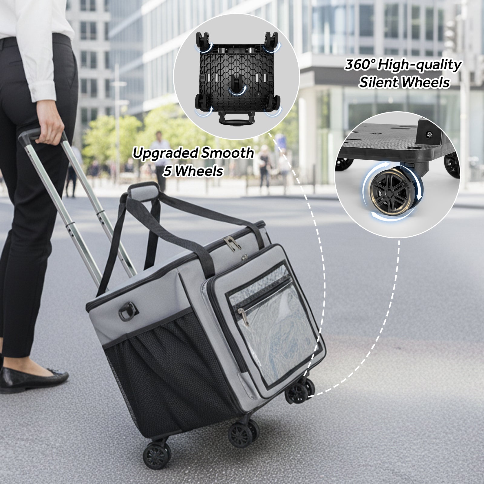 Tired of juggling heavy supplies every time you head to class, a craft fair, or work? Made from durable 600D Oxford fabric with a waterproof coating and soft sponge lining, this rolling craft bag offers exceptional resistance to daily wear, spills, and light rain. Its innovative five-wheel system ensures smooth and stable mobility across various surfaces, complete with a foldable trolley and two adjustable handle heights for effortless pulling. Inside, you’ll find a thoughtfully organized layout featuring a spacious main compartment ideal for laptops, books, sewing machines, or craft materials, along with multiple mesh and zippered pockets—including a convenient PVC clear-label pocket and quick-access side pockets—so everything stays visible and within reach. With three flexible carrying options—top handles, detachable shoulder strap, or trolley mode—this bag adapts to your day, whether you're heading to class, vending at a craft fair, or commuting to work.