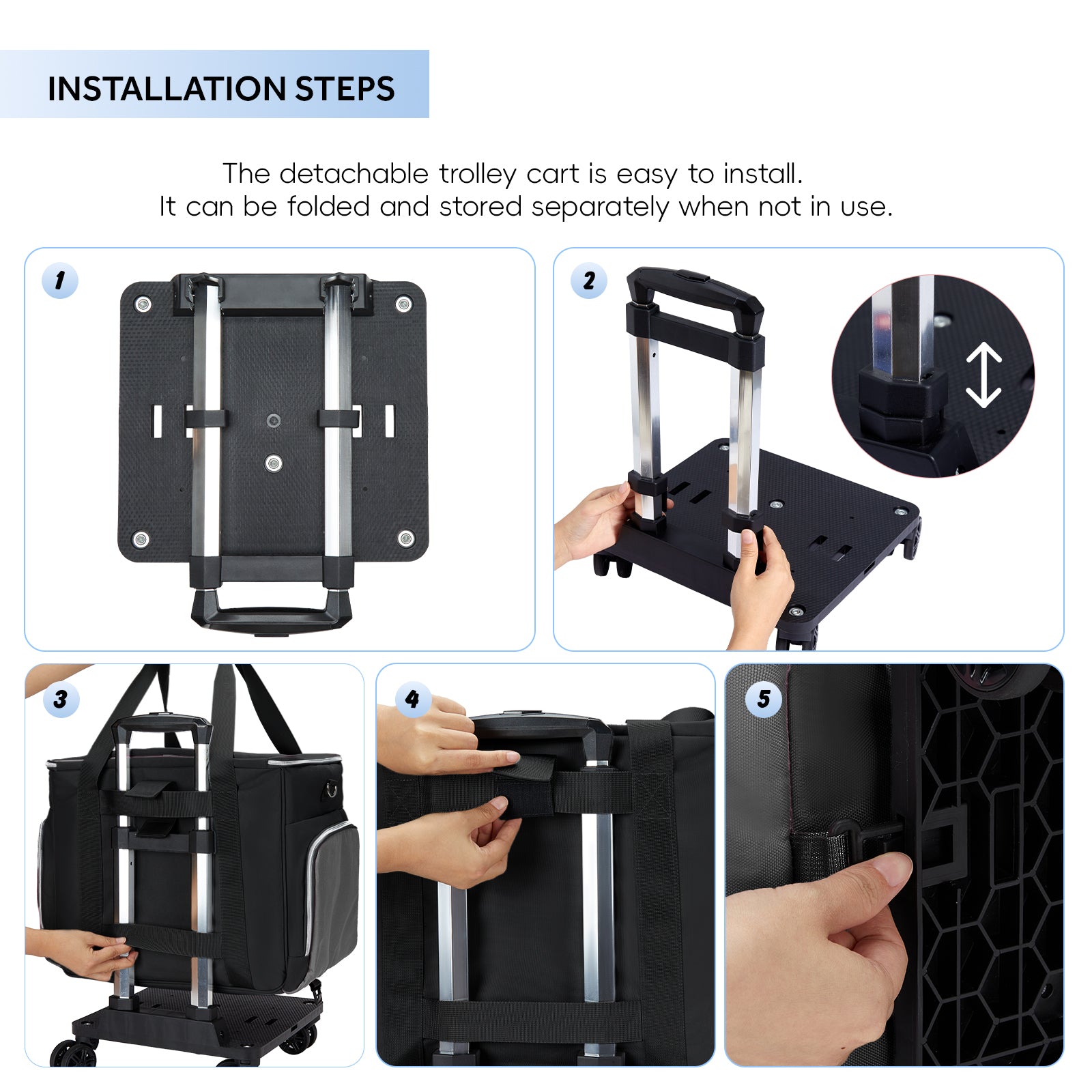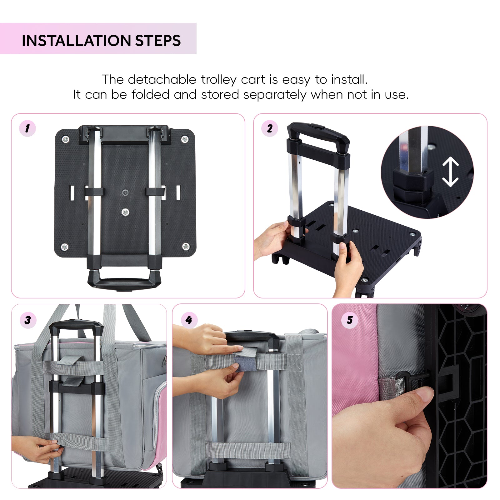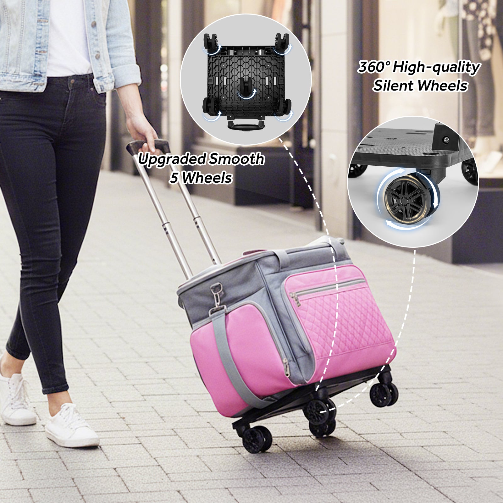 ✅【5-WHEEL HEAVY DUTY REMOVABLE】:Navigate craft fairs, workshops, and crowded classrooms with flawless control. The 5-wheel base ensures superior stability even over uneven surfaces, while the adjustable handle offers a smooth glide for users of any height—perfect when carrying delicate projects or heavy tools.