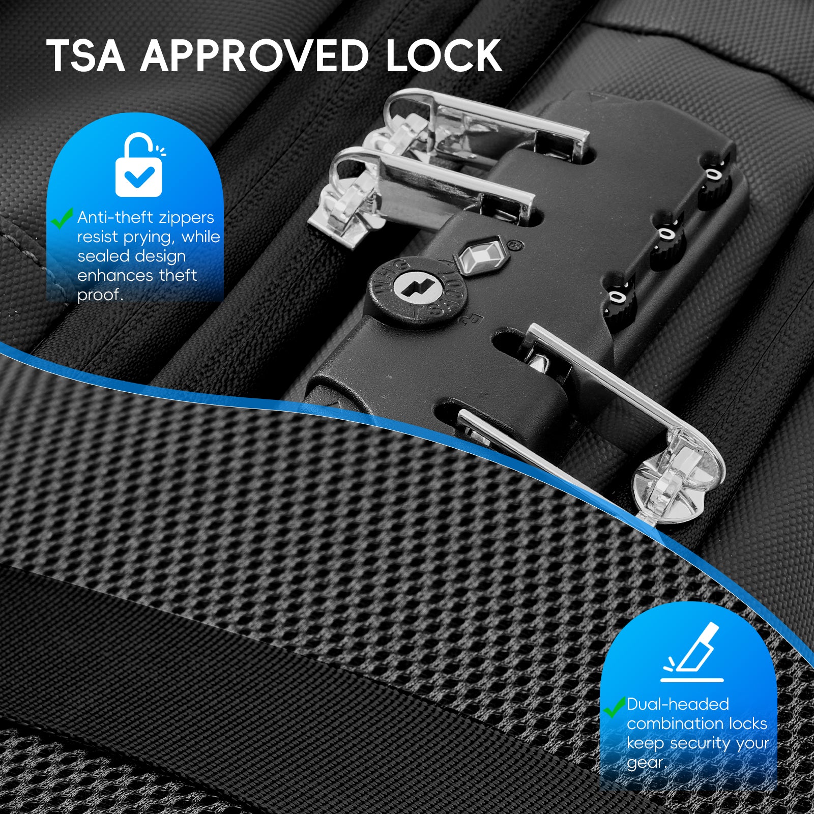 - 【TSA Anti-theft Lock Design】: Vacuum Backpack with New Safety Upgrade.TSA Dual-Lock Seals Laptop and Main Compartment Simultaneously.Anti-theft zippers resist prying, and the sealed design adds an extra layer of protection against pickpockets.Back reinforcement and vacuum-sealed compartment construction boost durability – perfect for business trips or adventures where your valuables need safeguarding.