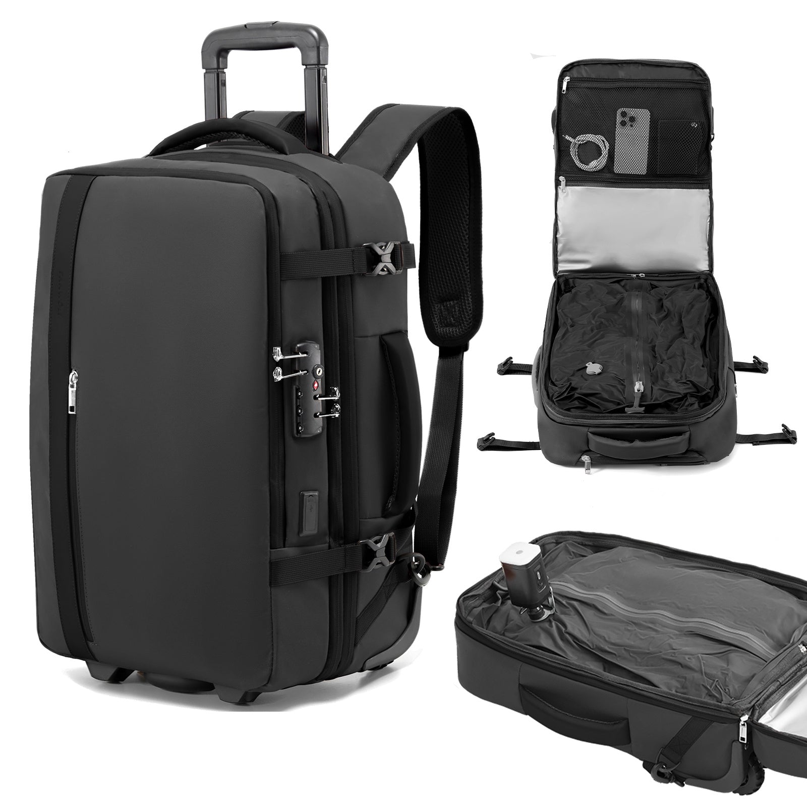 Still worried about not being able to carry more luggage? Are you looking for a suitable vacuum compression backpack for your trip? Fegat Rolling Vacuum Travel Backpack is the ideal companion for any journey. Carry more, feel lighter.Fegat rolling vacuum travel backpack made of 3-in-1 film composite fabric, it is not only waterproof and resistant but also scratch-resistant. This large-capacity vacuum backpack with wheels can be expandable to a 70L liters, ideal for trips lasting 4-5 days.From business trips to weekend hikes this 70L vacuum bag keeps your essentials organized, protected, and space-saving wherever you go.Fegat Vacuum seal backpack--2-in-1 Travel Backpack, it's easily transforming from a backpack to a carry-on suitcase. Perfect for all types of travel, including weekend trips and business travel.
