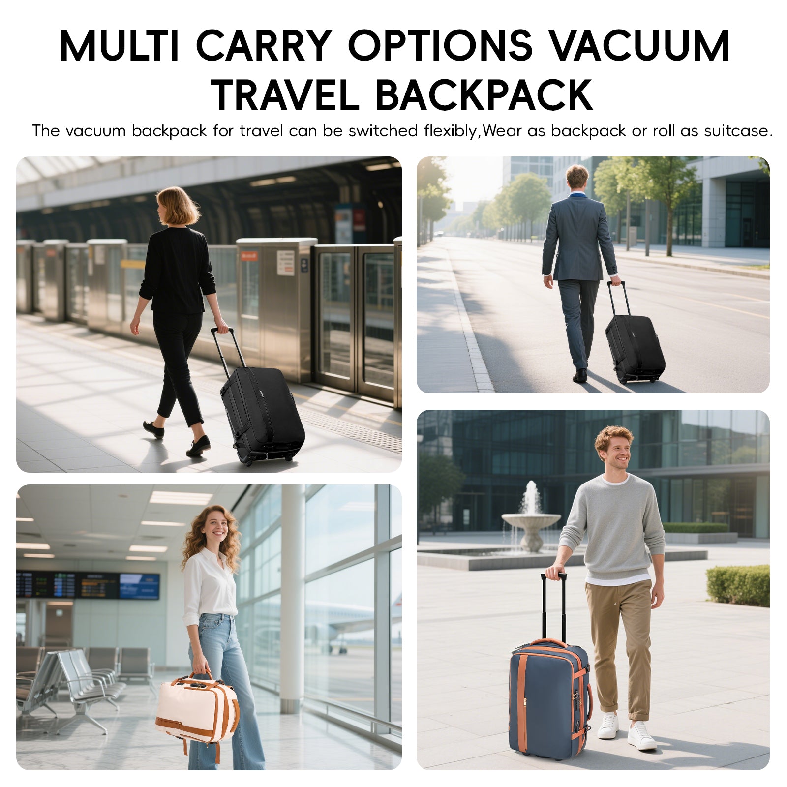 Fegat Rolling Vacuum Travel Backpack, 70L Expandable Compression Bag with Vacuum Pump,TSA Lock,Waterproof Carry on Luggage Vacuum Seal Backpacks Flight Approved for Travel Business Casual