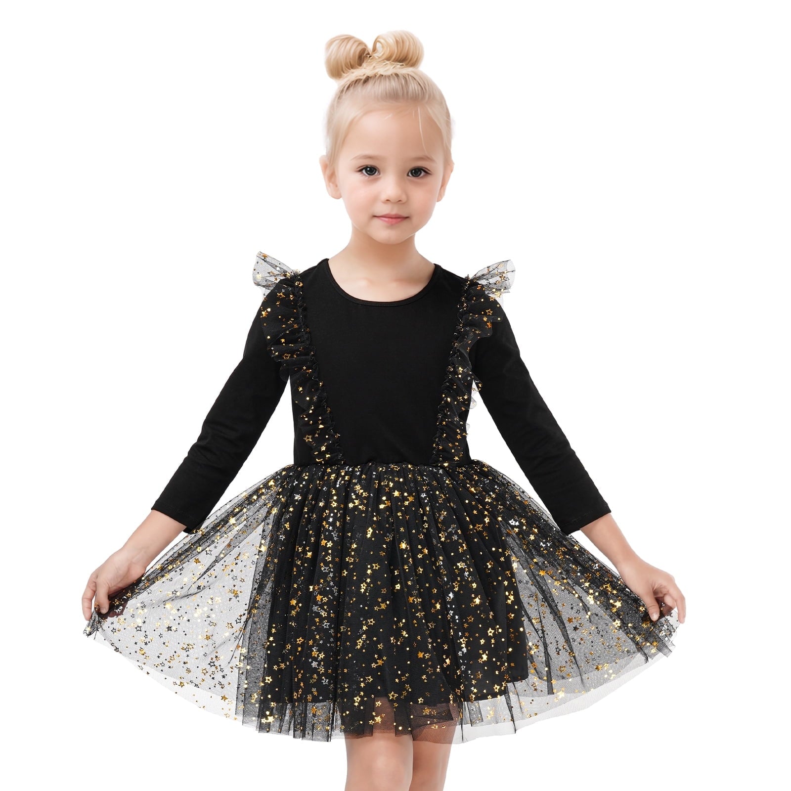 Toddler Girls Christmas Dresses Tutu Long Sleeve Velvet Tulle Fall Winter Princess Star Sequin Ruffle Holiday Party Birthday Xmas Dresses Black 4T(100)