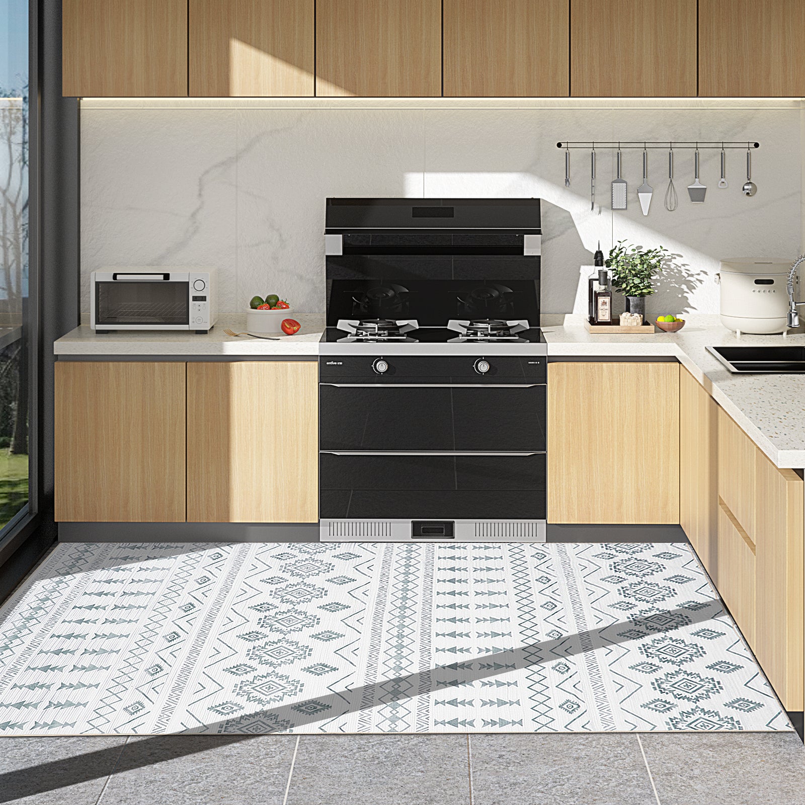 ?¡¾Ultra-thin and Safe¡¿ This ultra-thin Moroccan rug can be easily placed in entryways and under furniture, and won't get stuck on doors and become a tripping hazard. The sweeping robot can move freely to clean the carpet. This indoor rug can be used in many occasions, such as entry, living room, bedroom, dining room and more.