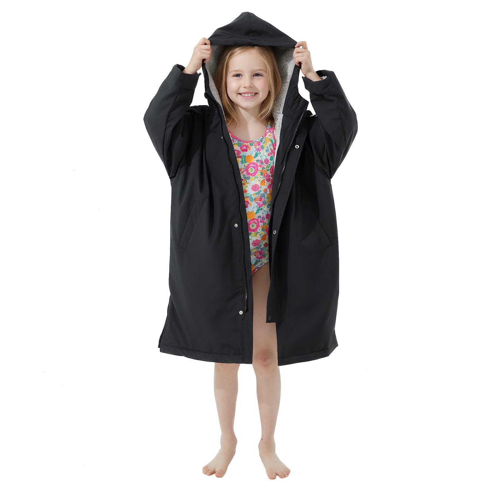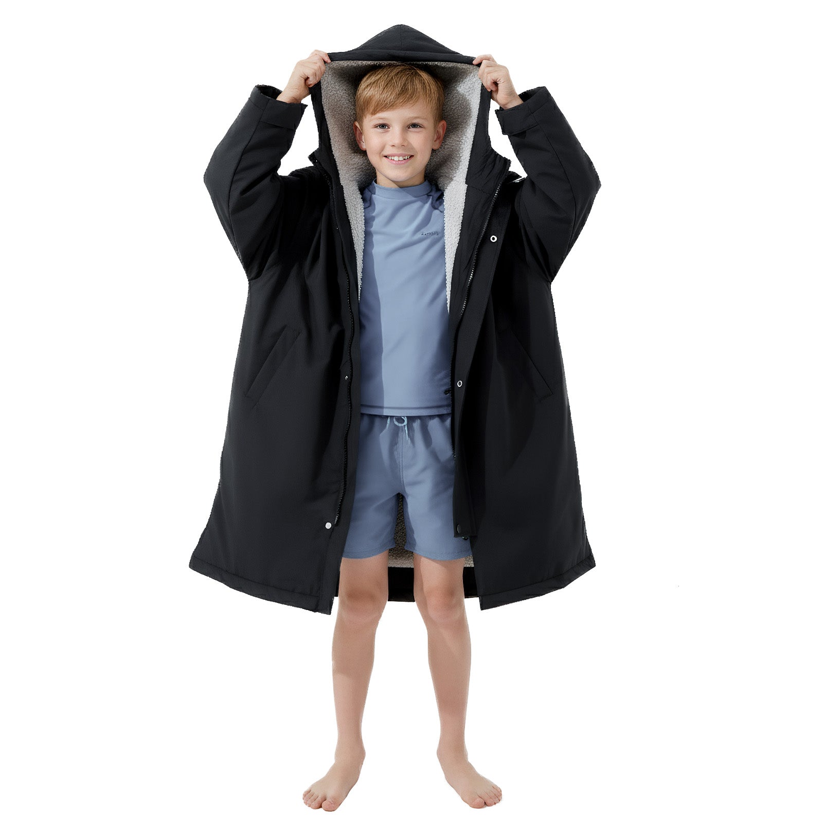 Lobmouse Unisex Swim Parka,Sherpa Fleece Lined Warm Coat,Windproof Waterproof Quick-dry Hooded Swim Jacket,Oversize Surf Poncho Changing Robe Parka for Adult & Kids