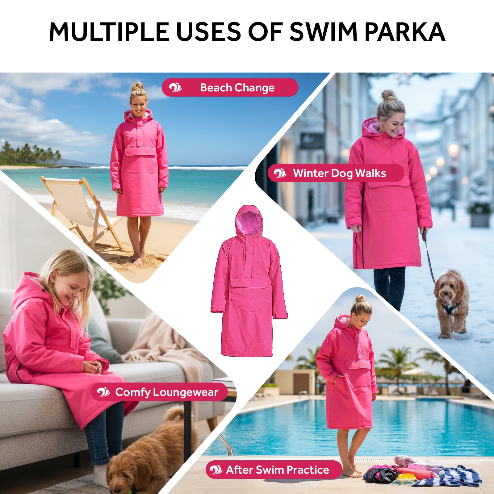 - ✅ 【Windproof & Water-Resistant】:Made with a waterproof polyester shell, this swim parka resists splashes and rain—ideal for beach days, poolside relaxation, or surf breaks. No more shivering in wet clothes!