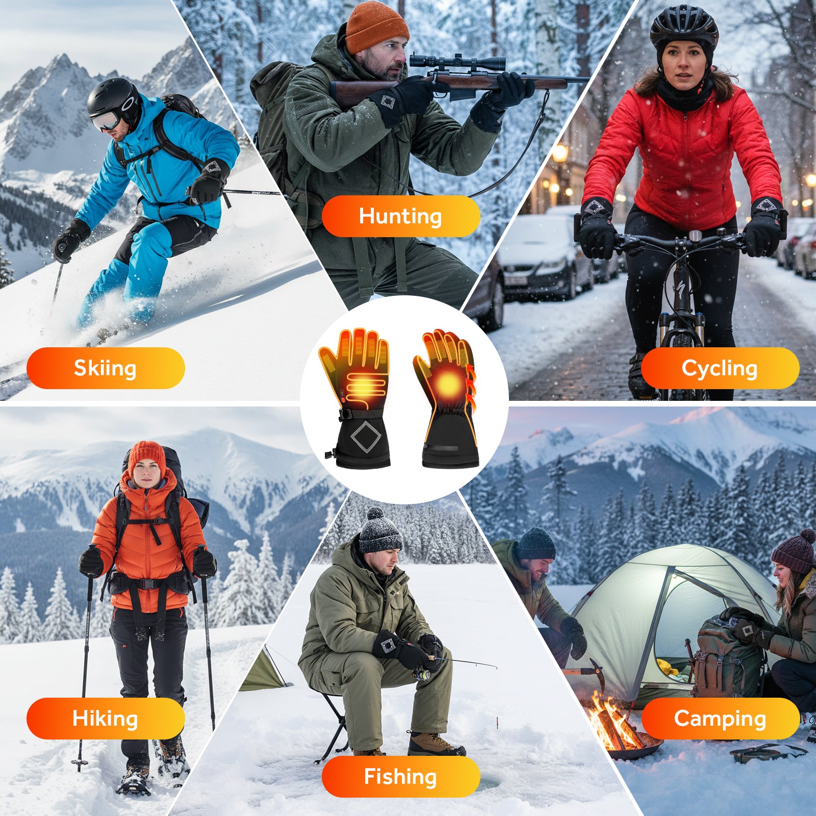 360° All-Around Heat: Unlike ordinary heated gloves that leave fingertips cold, our advanced PTC heating system targets your entire hand—especially the palm and finger pads. Feel consistent, soothing warmth (up to 158°F) spread evenly across your hands, even while gripping ski poles or tools. No more cold spots—just reliable heat when you need it most.