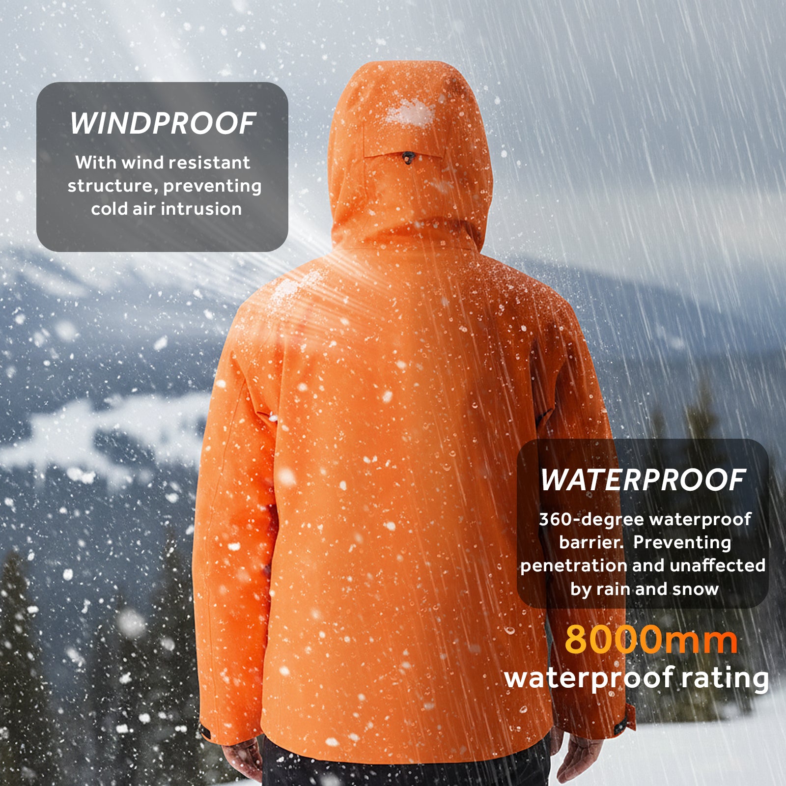 🌧️【Fully Waterproof & Windproof】 - Made with rugged 2.5L hardshell fabric and TPU water-repellent coating, this warm jacket offers storm-grade protection with an 8000mm waterproof rating and fully sealed seams. Slim H-shape cut with adjustable hem—no bulk.