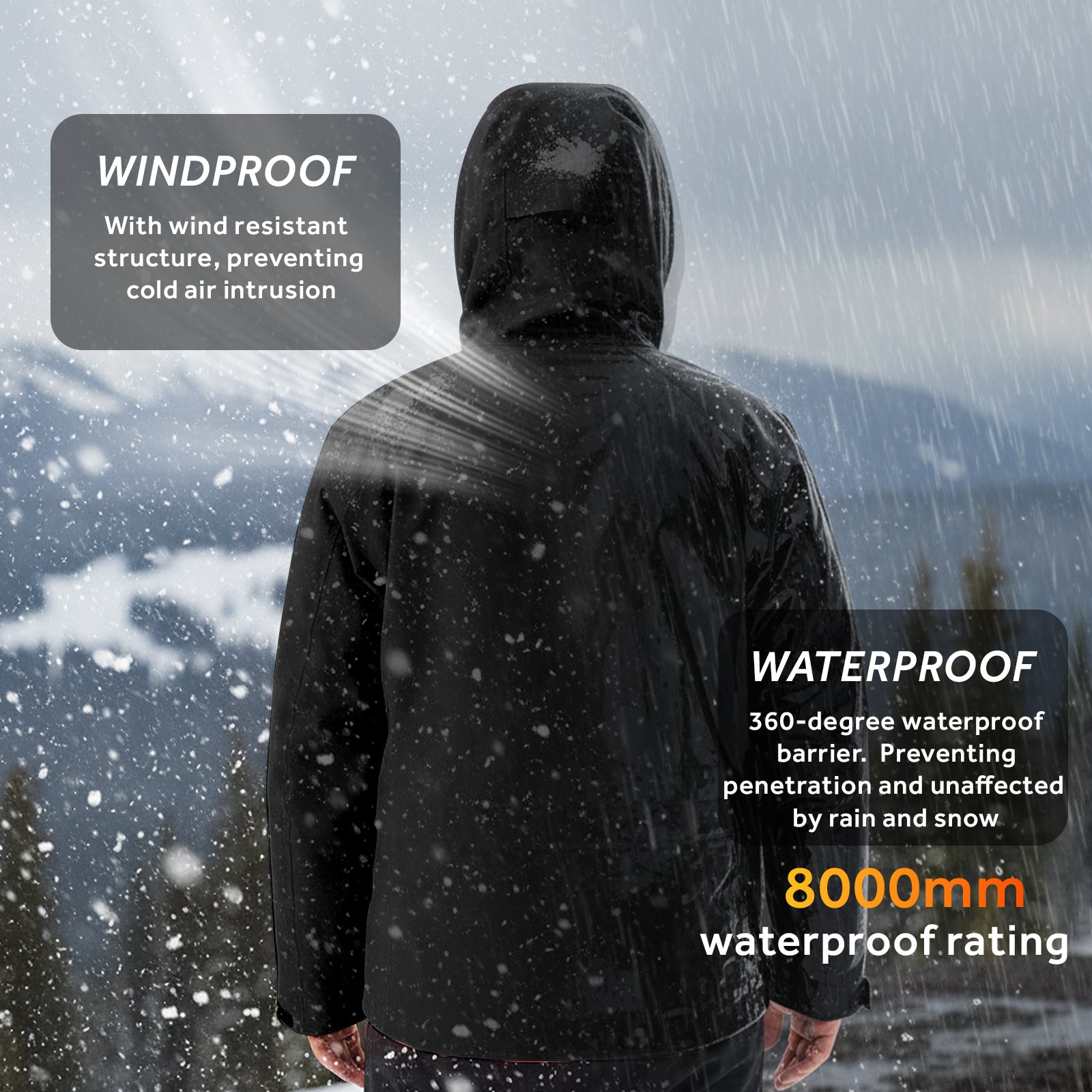 Heated Jacket for Men Women,Battery Powered Heating Jacket,Waterproof Windproof Warm Hooded Heated Coat for Hiking Skiing Camping