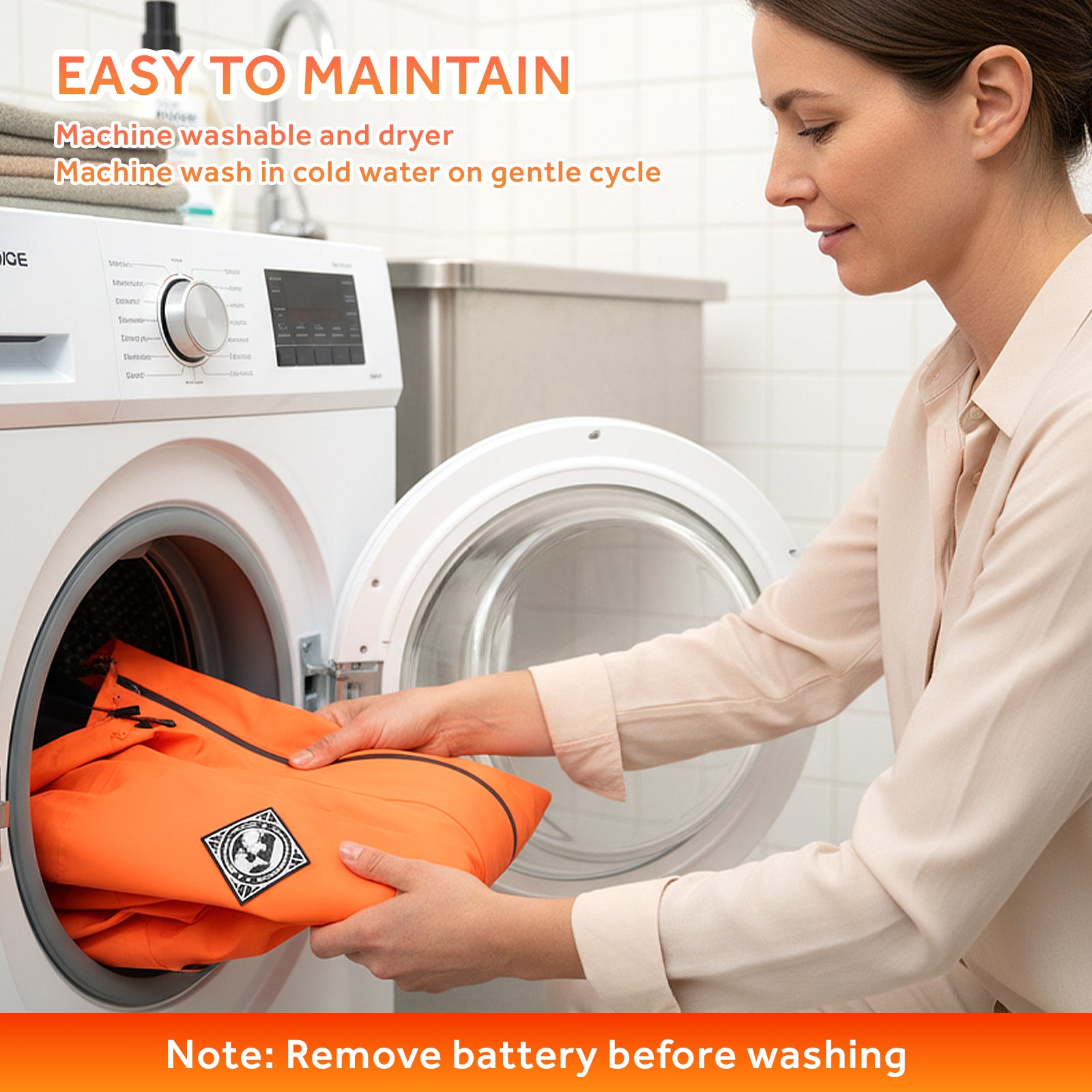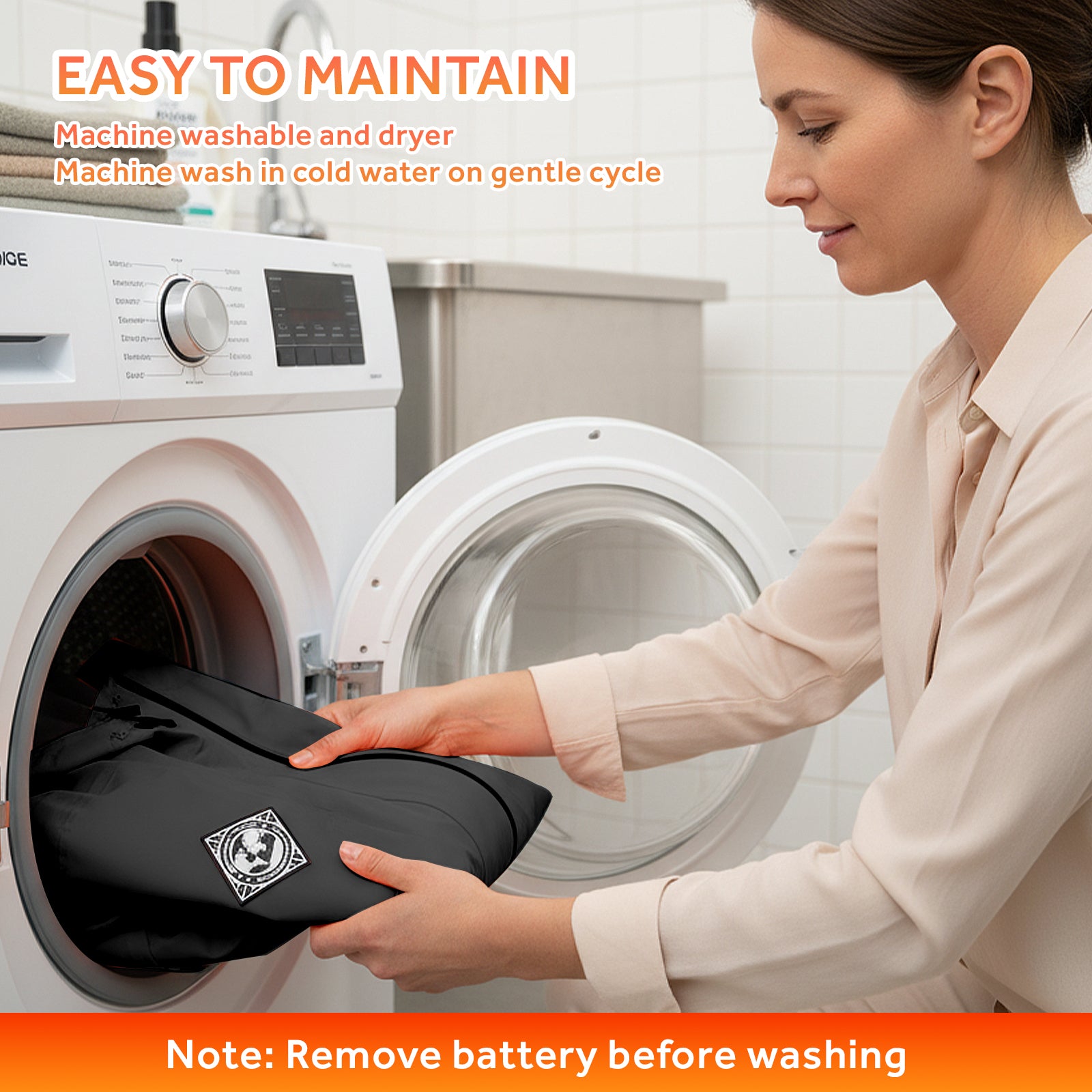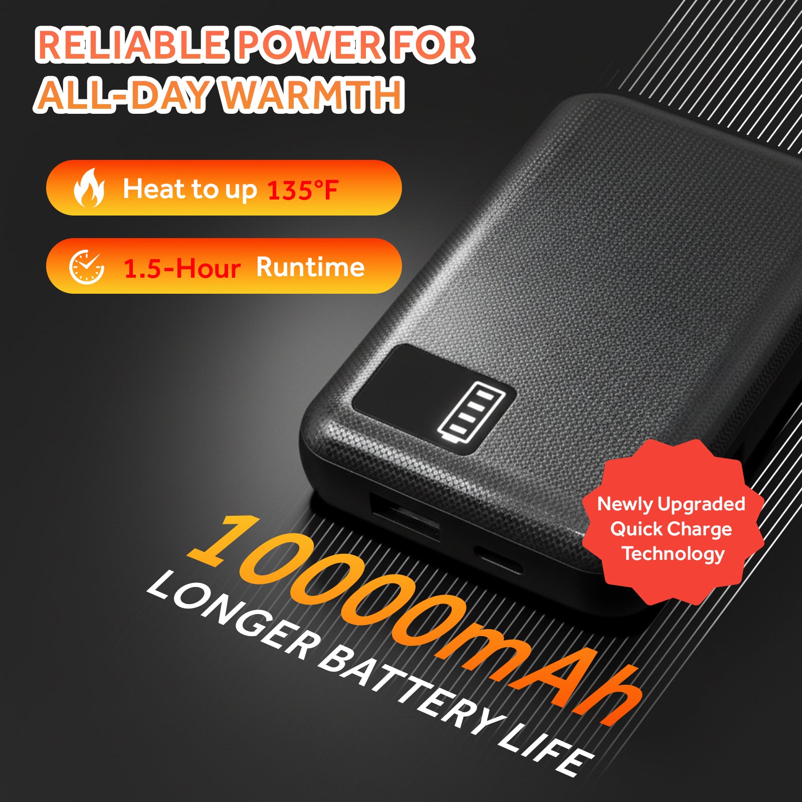 ⚡【1.5-Hour Fast Charge & Power Bank Ready】 - Fully charges in just 1.5 hours. Powered by a high-capacity 7.4V 10000mAh lightweight battery and 20W rapid charging tech. Our heating jacket comes with a special power bank adapter, connect any external battery via Type-C/USB for all-day heat, anywhere.
