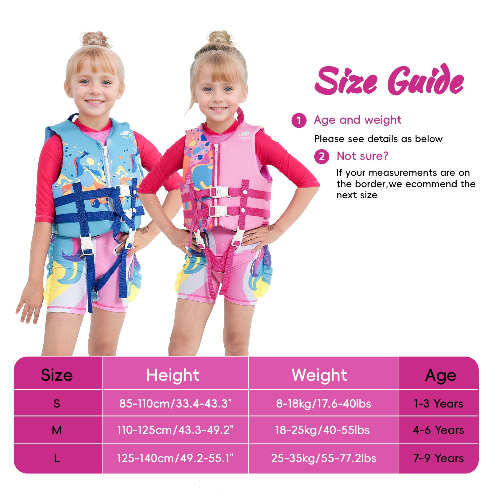 Gogokids Kids Life Jacket Swim Vest with Adjustable Safety Strap,Toddler Float Jacket Boys and Girls Float Swimsuit Buoyancy Swimwear
