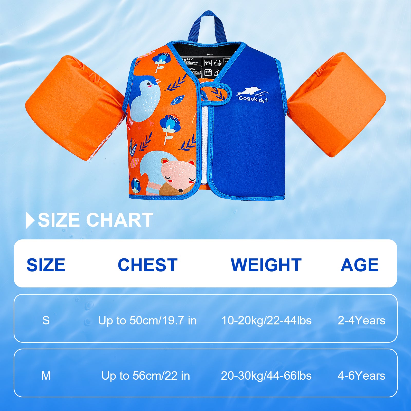 Gogokids Kids Swim Vest Toddler Armbands, Kids Jacket-style Swim Vest Floation with Two Arm Bands, Children Float Jacket for Boys Girls(2-6 Years)
