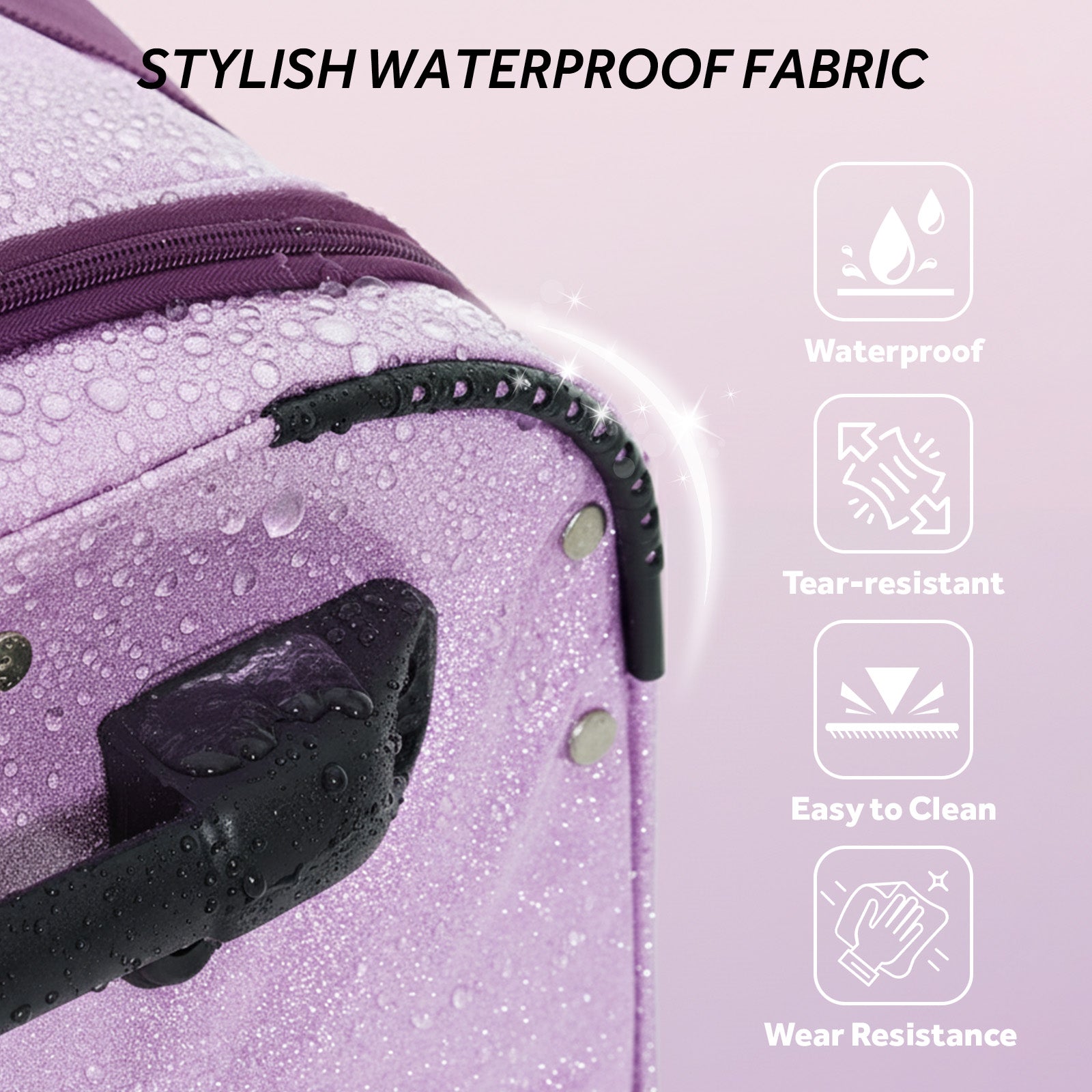 Give your child's dancing dreams the support they deserve with our top-of-the-line dance bag. Help your budding dancer shine on the stage by investing in a dance bag that matches their passion. Dancers should focus their time on the stage and their dreams. Champions are always won by those who are more prepared. Save time for creativity. Let us organize your costume wardrobe. Built to last with an enhanced anti-tipping design and a stable DUAL SUPPORT SYSTEM, this bag is crafted from waterproof PU-coated glitter fabric for durability and shape retention, making it the perfect companion for all your competitions and awards. Start their journey towards success with our professional dance bag now!